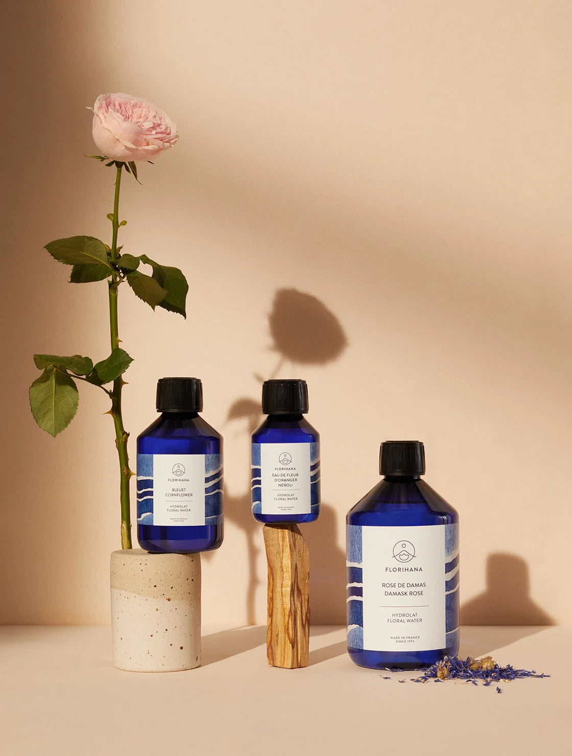 これまでペットボトル容器タイプのみでご用意していたフローラルウォーターに、より手軽に・より便利にお使いいただけるスプレーガラスボトルタイプが仲間入りしました。