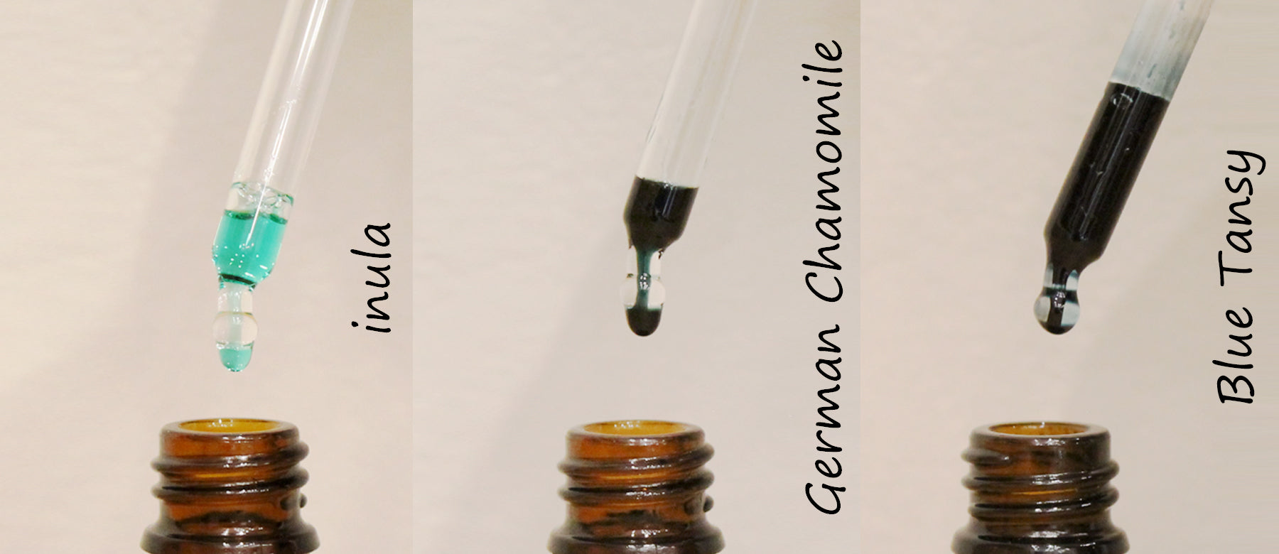 ブルータンジー、ジャーマンカモミール、ヤロウは、水蒸気蒸留の過程で熱を加えることで、肌を穏やかに落ち着かせることで知られる、青い色合いのカマズレンという成分を形成します。